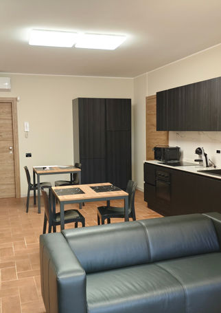 Sala condivisa con divani e televisore Qled 4K